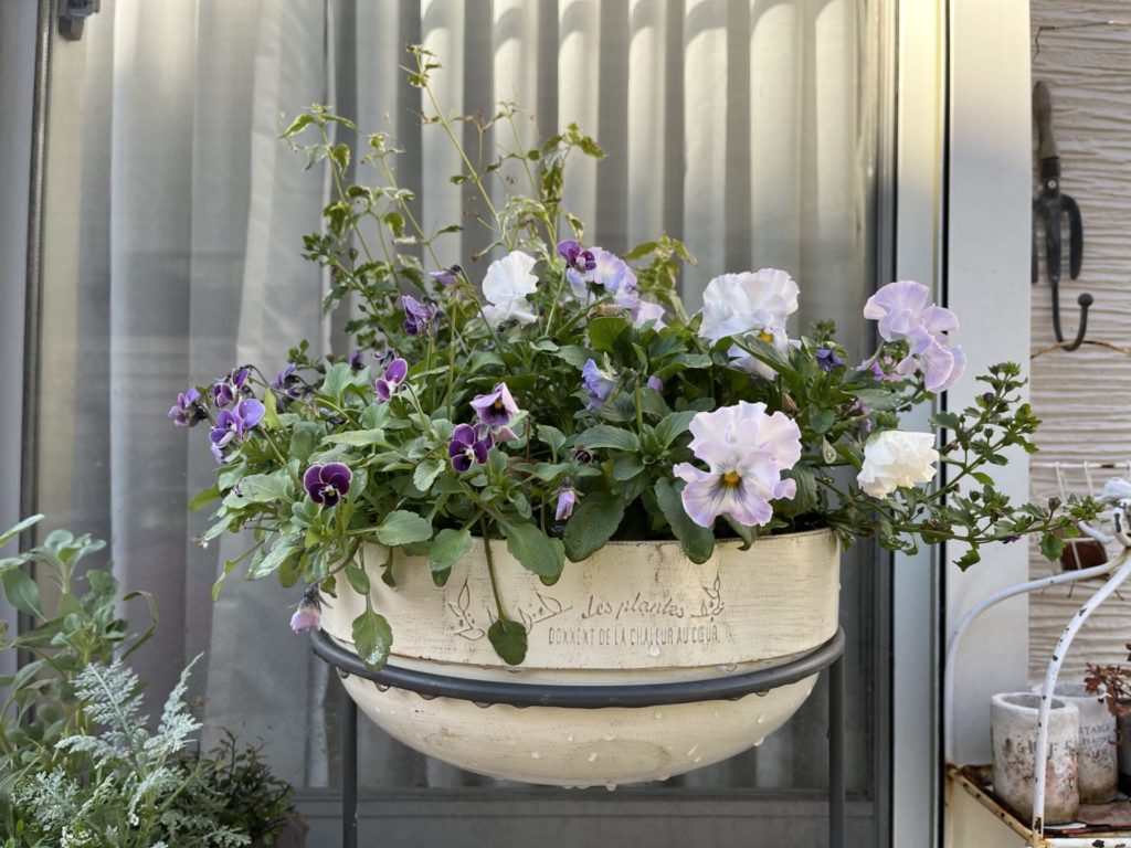 秋になり店頭で売り出されてすぐにお迎えしたパンジーの寄せ植えも可愛くなってきました。